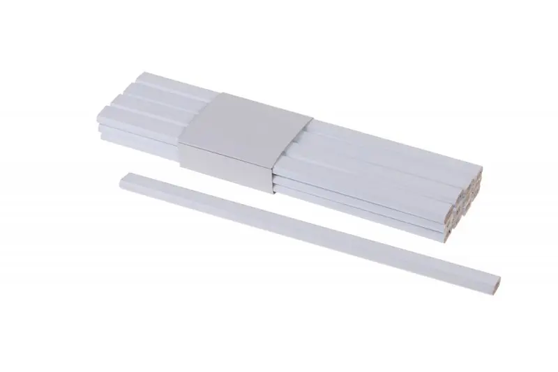 Jadro ceruzky je vyrobené z materiálu, ktorý zabezpečuje hladké a presné značenie bez zbytočného drobenia. Biely pigment zostáva dobre viditeľný aj na drsnejších povrchoch, čo uľahčuje prácu pri rezaní, vŕtaní alebo montáži. Ceruzka je vhodná na použitie v interiéri aj exteriéri.