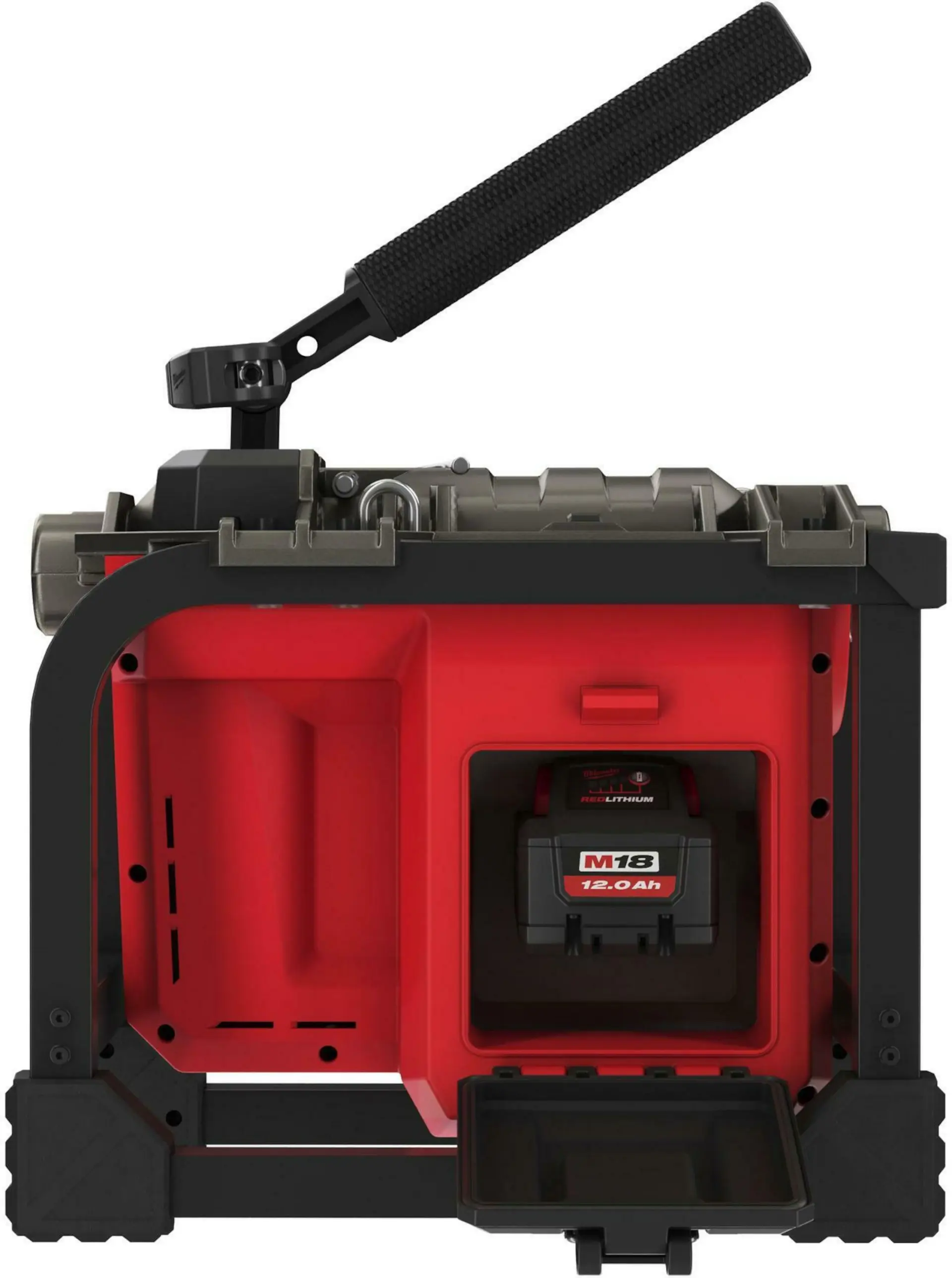 Akumulátorová kompaktní sekční čistička potrubí Milwaukee M18 FCSSM-121, součástí balení je 1x akumulátor FORGE M18 FB12 (12.0 Ah) a rychlonabíječka M12-18 FC, zařízení používá spirály 16 mm a 22 mm, hmotnost 14 kg, pro potrubí s průměrem od 32mm do
