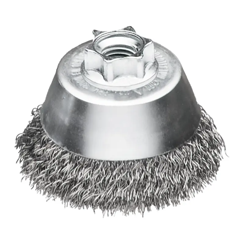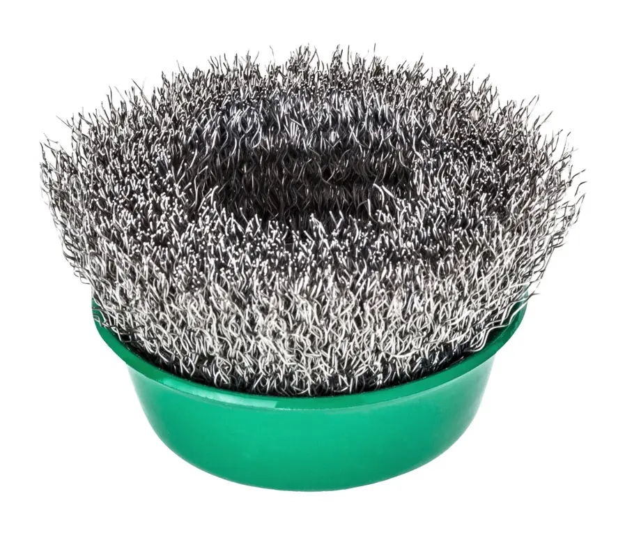 Vhodné pre uhlové brúsky 115 mm a 125 mm. Črepníkové kefy s vlnitým drôtom sa používajú na stredne náročné kefovanie, napríklad opracovanie väčších plôch, odstraňovanie hrdze a leštenie, odstraňovanie náterov, nečistôt a okujú.