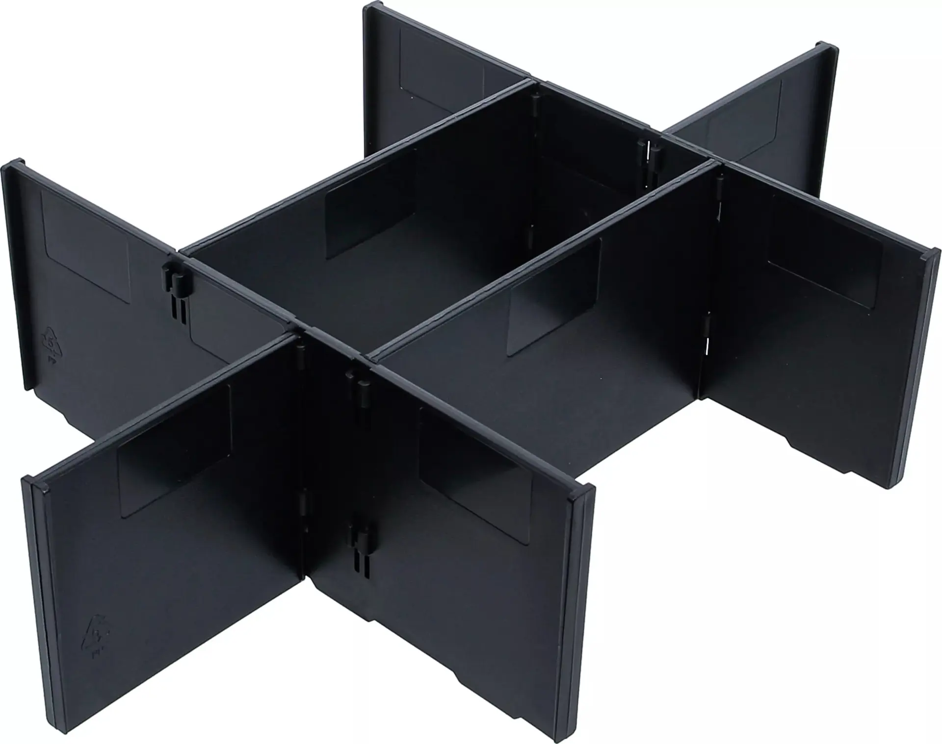 Sada 6 deliacich prepážok umožňuje ľahké rozdelenie vnútorného priestoru systémových kufrov veľkosti M podľa aktuálnych potrieb. Kompatibilita s viacerými typmi kufrov zaisťuje variabilitu usporiadania.