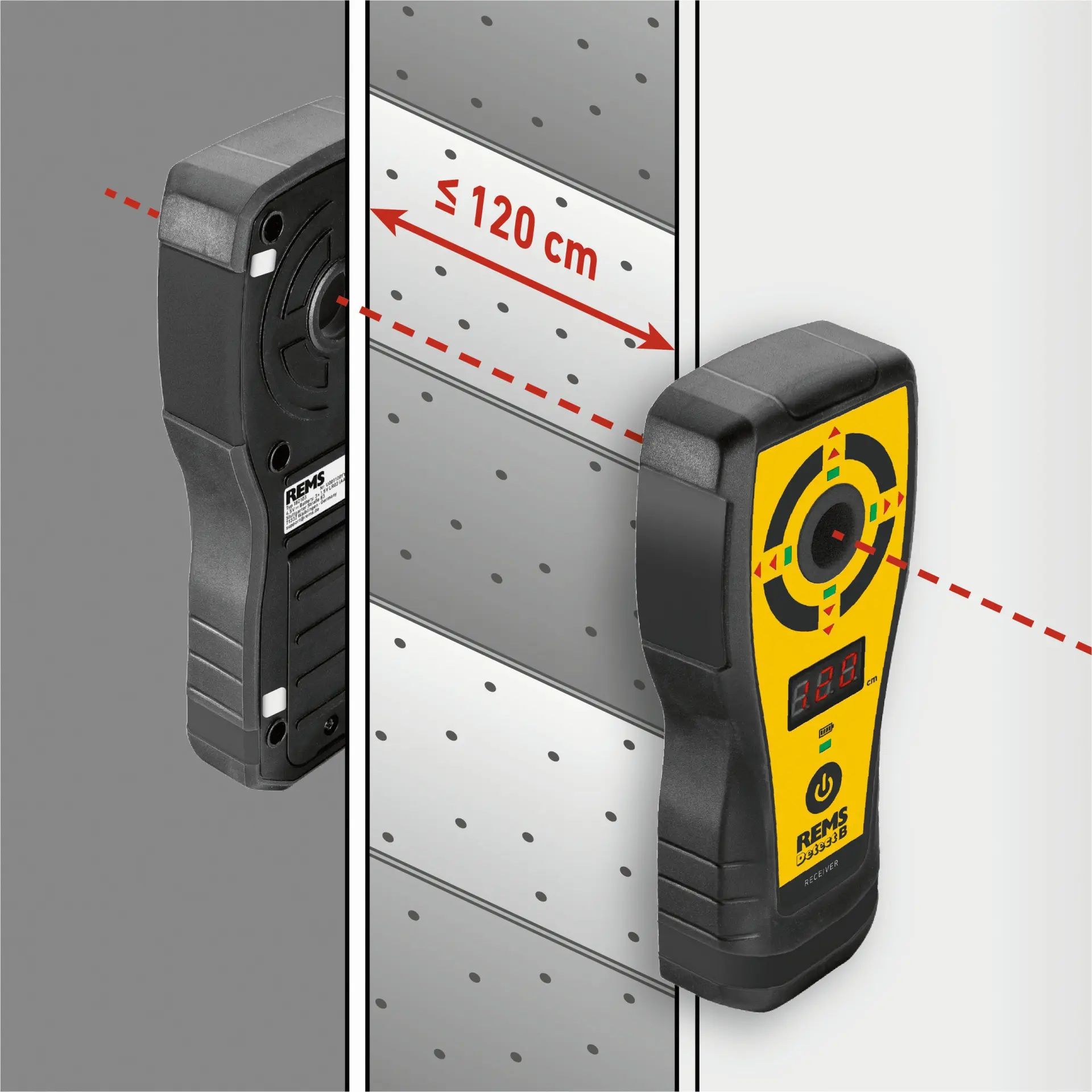 • Zostáva sa z jednotky vysielača a prijímača pre presné určenie vstupných a výstupných stredných bodov (osi) na vŕtanie