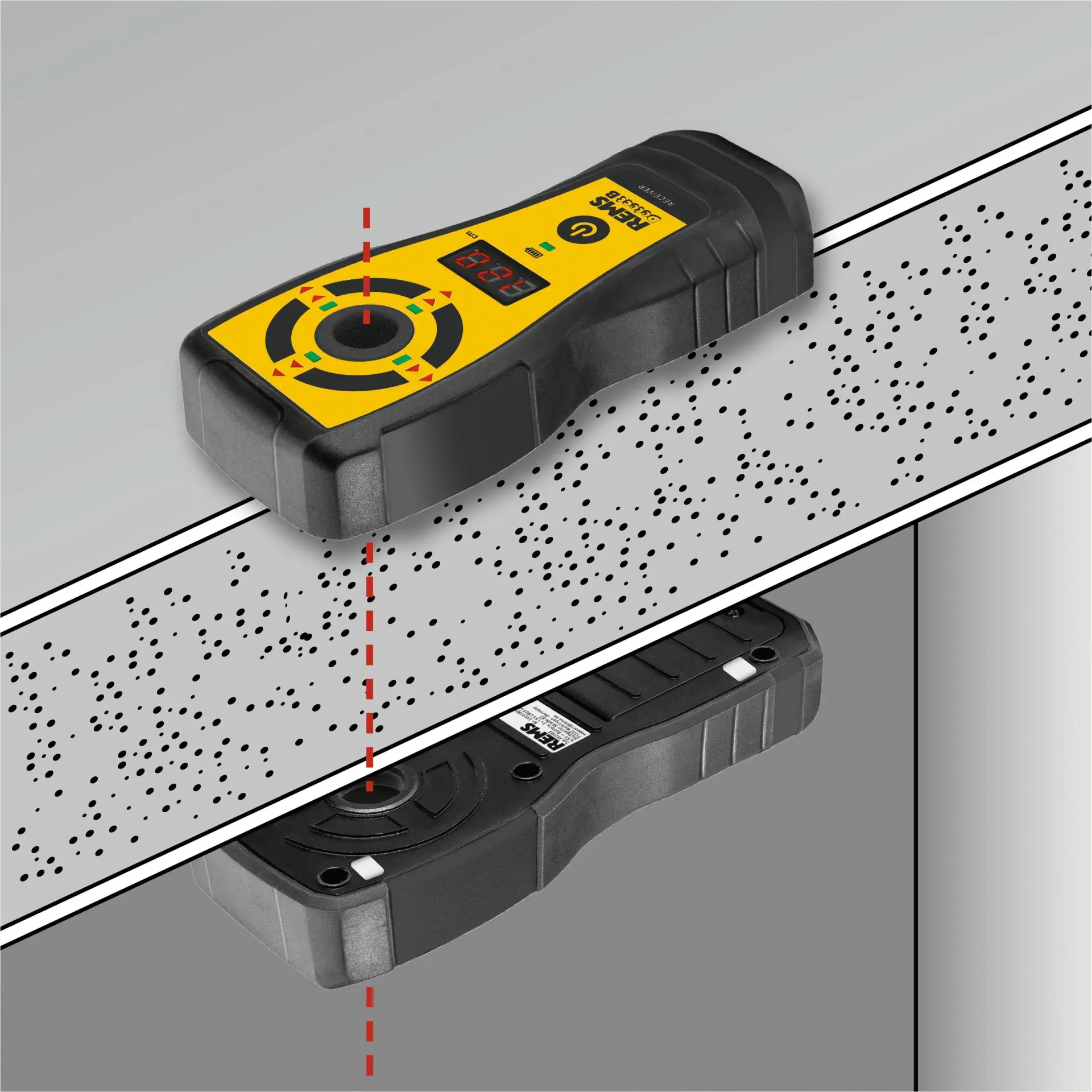 • Pre presné určenie (vycentrovanie) vstupných a výstupných stredných bodov (os) pri vŕtaní priechodných otvorov a na automatické zobrazenie hrúbky materiálu