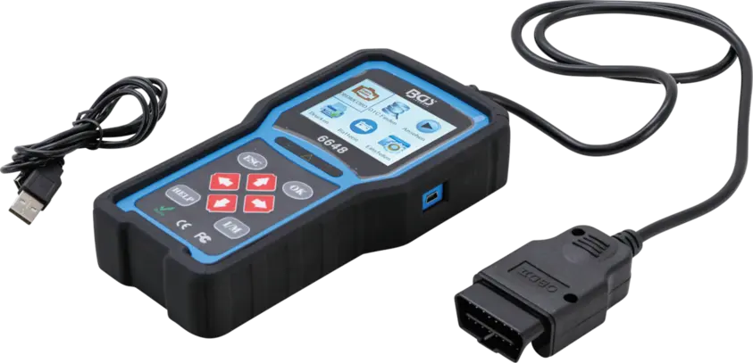 Přístroj pro diagnostiku chyb OBD II (EOBD) BGS106648 umožňuje rychlé zjištění závad u většiny vozidel s OBD II rozhraním a zobrazuje chybové kódy na přehledném displeji. Kompaktní provedení usnadňuje manipulaci a připojení přímo do diagnostické zásu