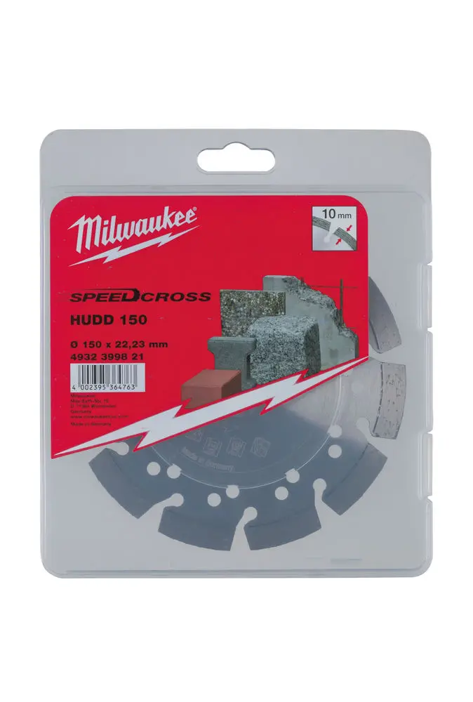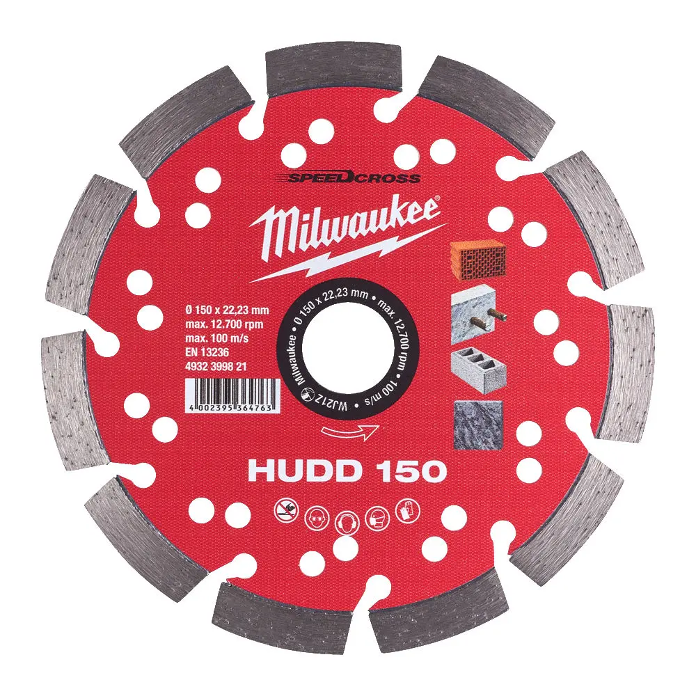 Diamantový rozbrušovací kotouč Milwaukee HUDD 150 mm SPEEDCROSS™ je určen pro řezání betonu, cihel a stavebních materiálů, má průměr 150 mm a segmenty pro rychlý řez. Kompatibilita s úhlovými bruskami zajišťuje široké využití při stavebních pracích.