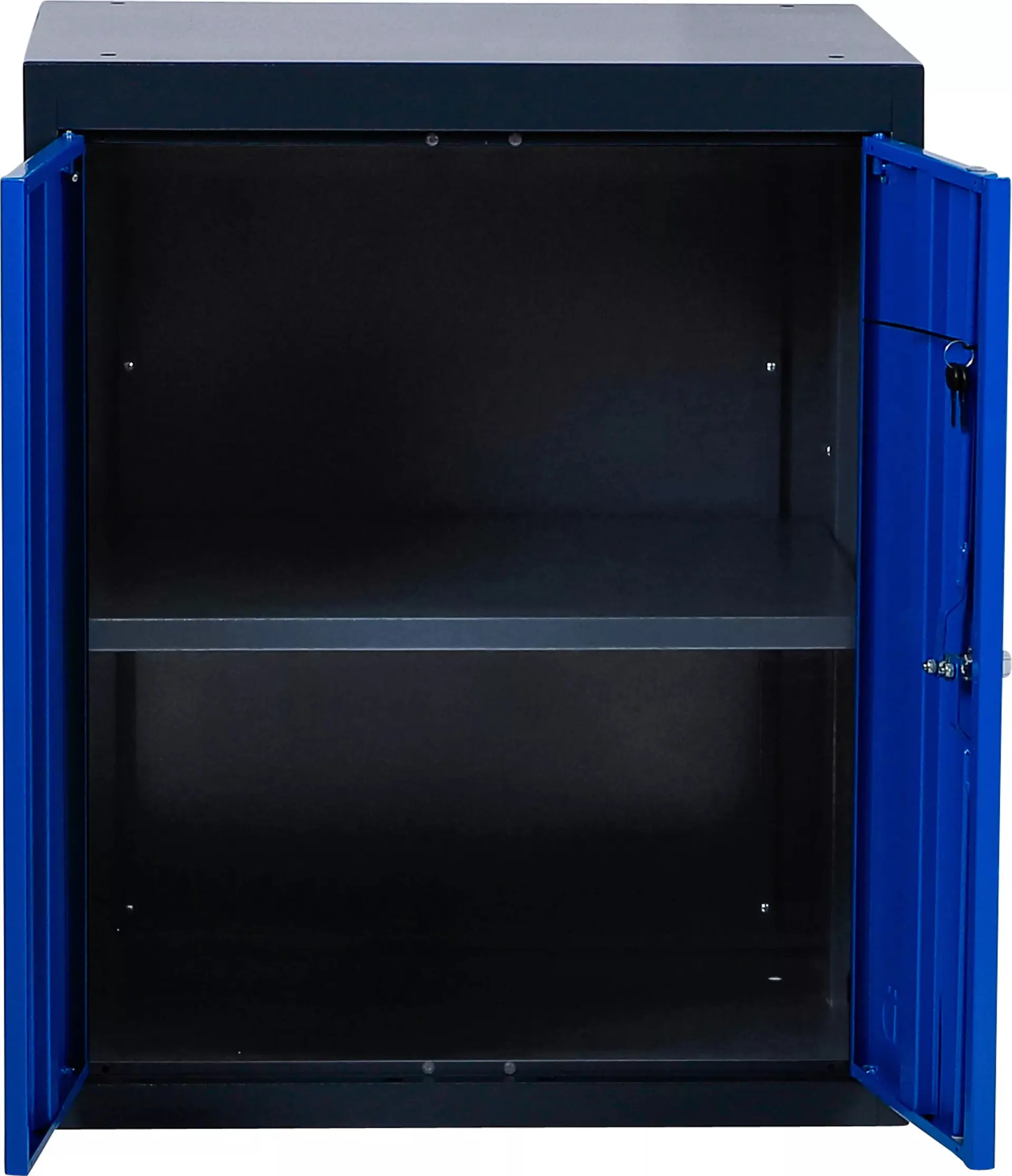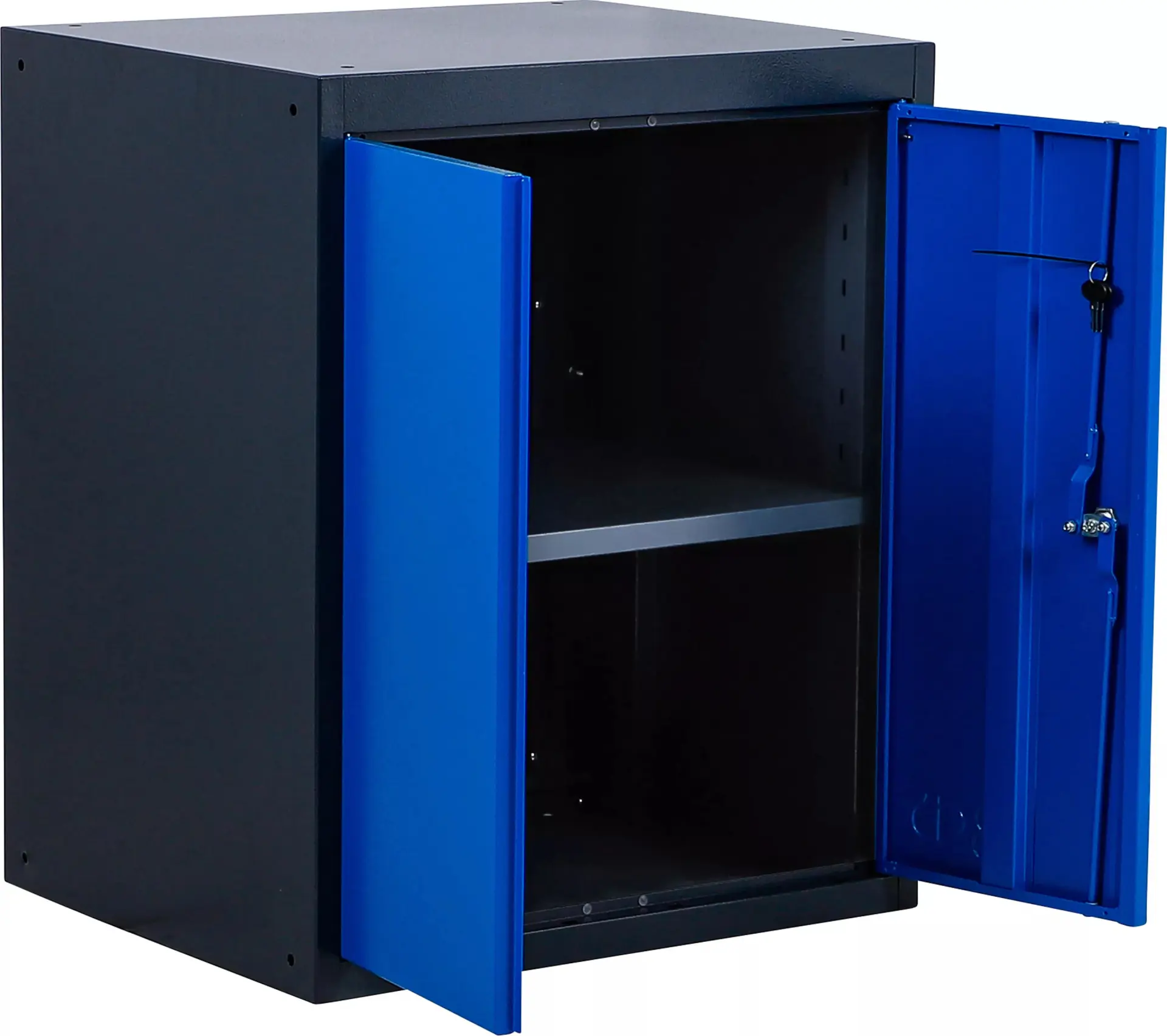 Dielenská skrinka s dvojitými krídlovými dverami ponúka jednu priehradku na prehľadné uloženie náradia a materiálu v pracovnom priestore. Robustná konštrukcia zaisťuje dlhú životnosť aj pri častom používaní.