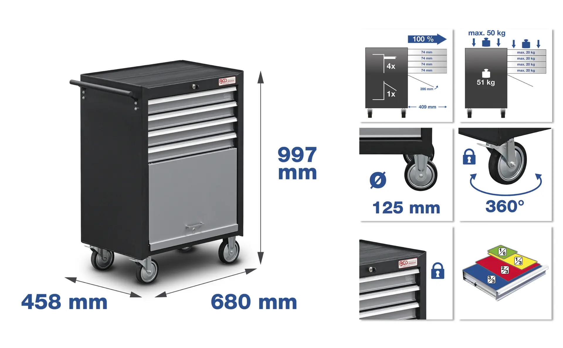 Súčasťou dodávky náraďového vozíka BGS technic