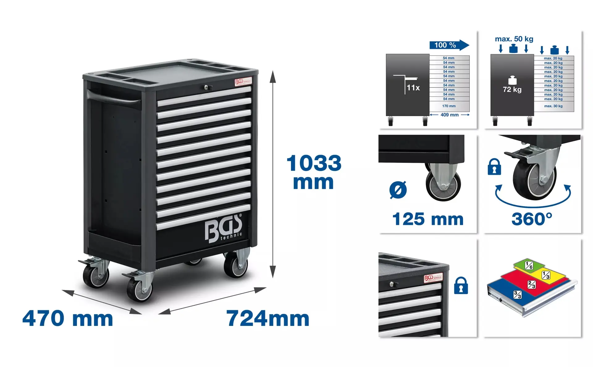 Dielenský vozík BGS104103 - 11 zásuviek. Prázdny (BGS104103)