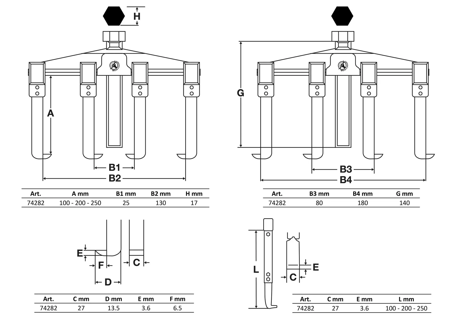BGS1074282 je vhodná volba pro mechaniky, domácí kutily i profesionály, kteří potřebují univerzální nářadí pro demontáž různých součástí. Rozsah velikostí a pevná konstrukce umožňují použití v široké škále aplikací v automobilovém i strojírenském prostředí.