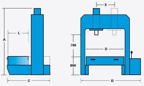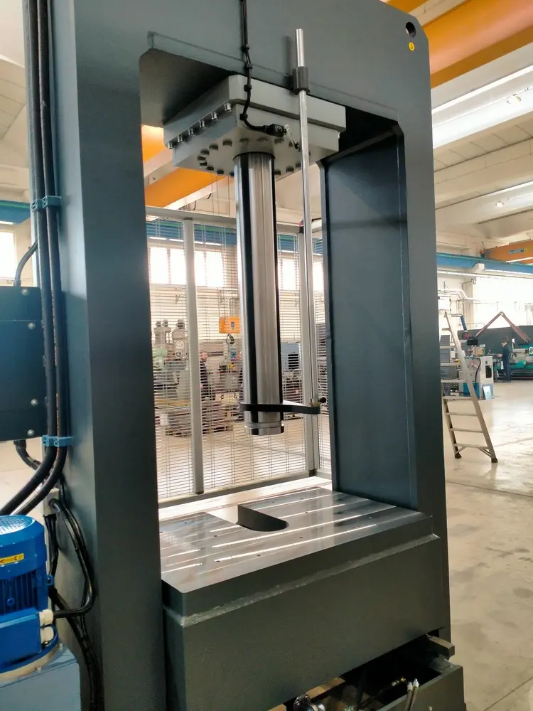Profesionálny hydraulický lis vo výrobnej kvalite pre rovnanie, montáža demontáž súčastí za studena i za tepla. Vyhotovenie do výroby s pohyblivým pracovným stolom (ručné posun) s uľahčenúnaložením/vykládkou obrobku zhora.