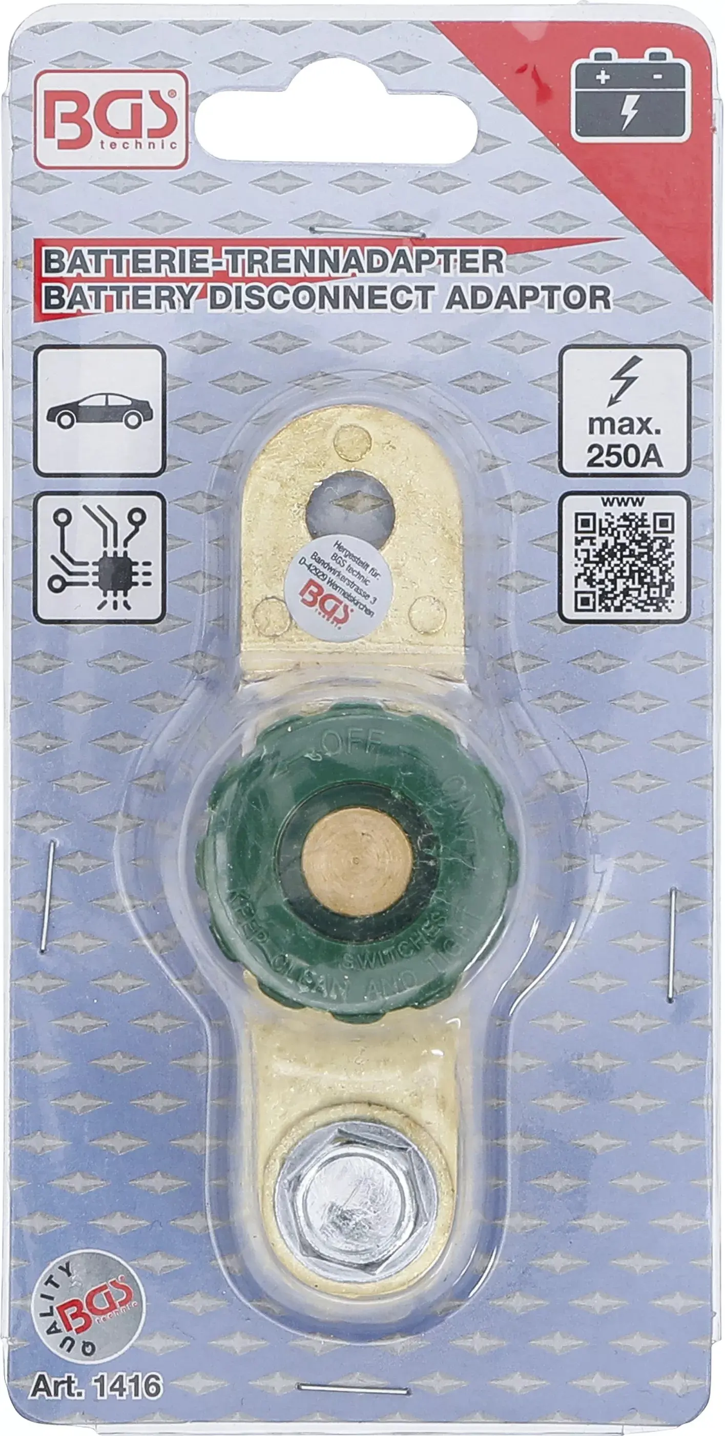 Odpojovač kontaktu autobatérie BGS101416, ploché svorky (250 A) (BGS101416)