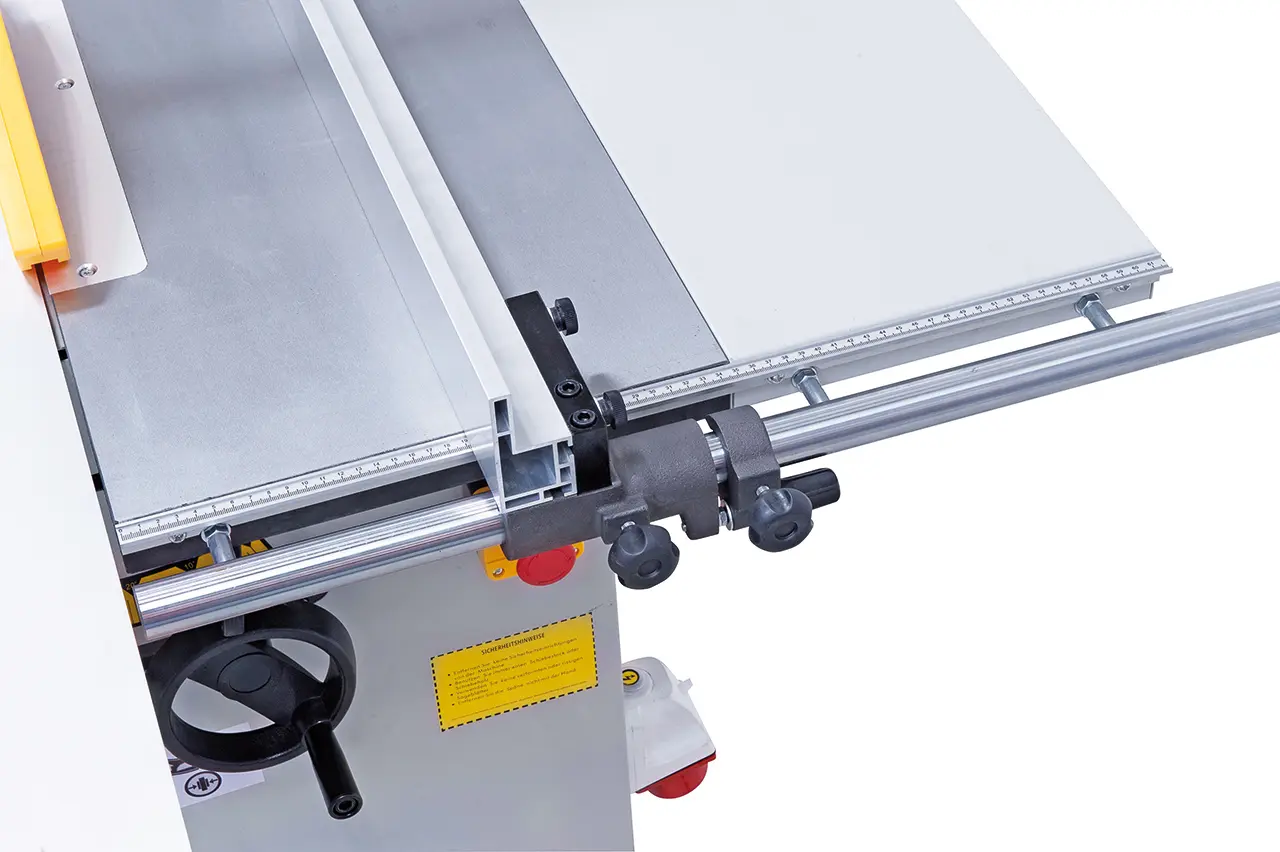 • Štandardne s hliníkovým posuvným stolom s opornou plochou 1300 x 240 mm