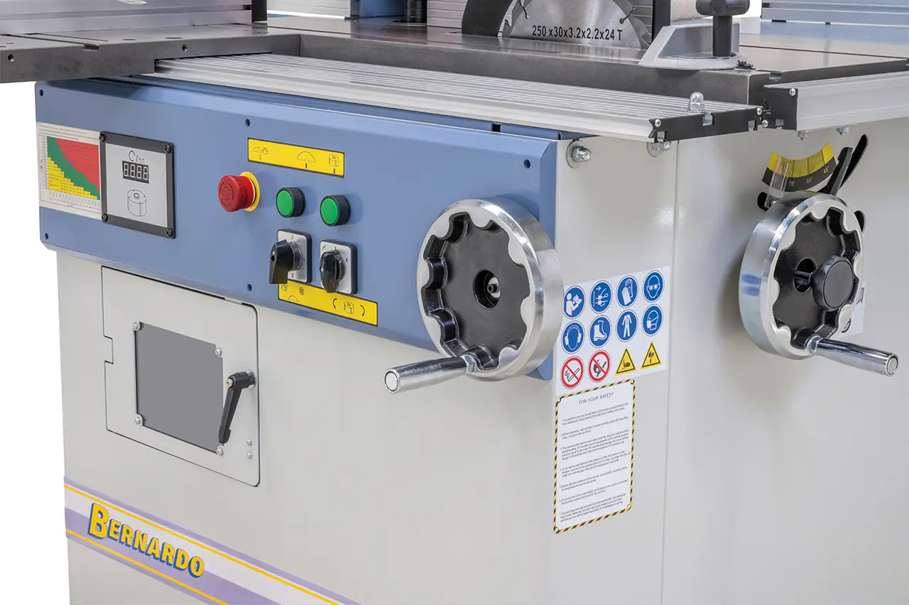 Kotúčová píla Bernardo kombinovaná s frézkou - napájacie napätie 400 V, píla/frézka: výkon 2,2/1,5 kW, otáčky 4750/8000 U.min-1, priemer vretena 30/30 mm, priemer nástroja 250/150 mm, stôl 920 × 1150 mm