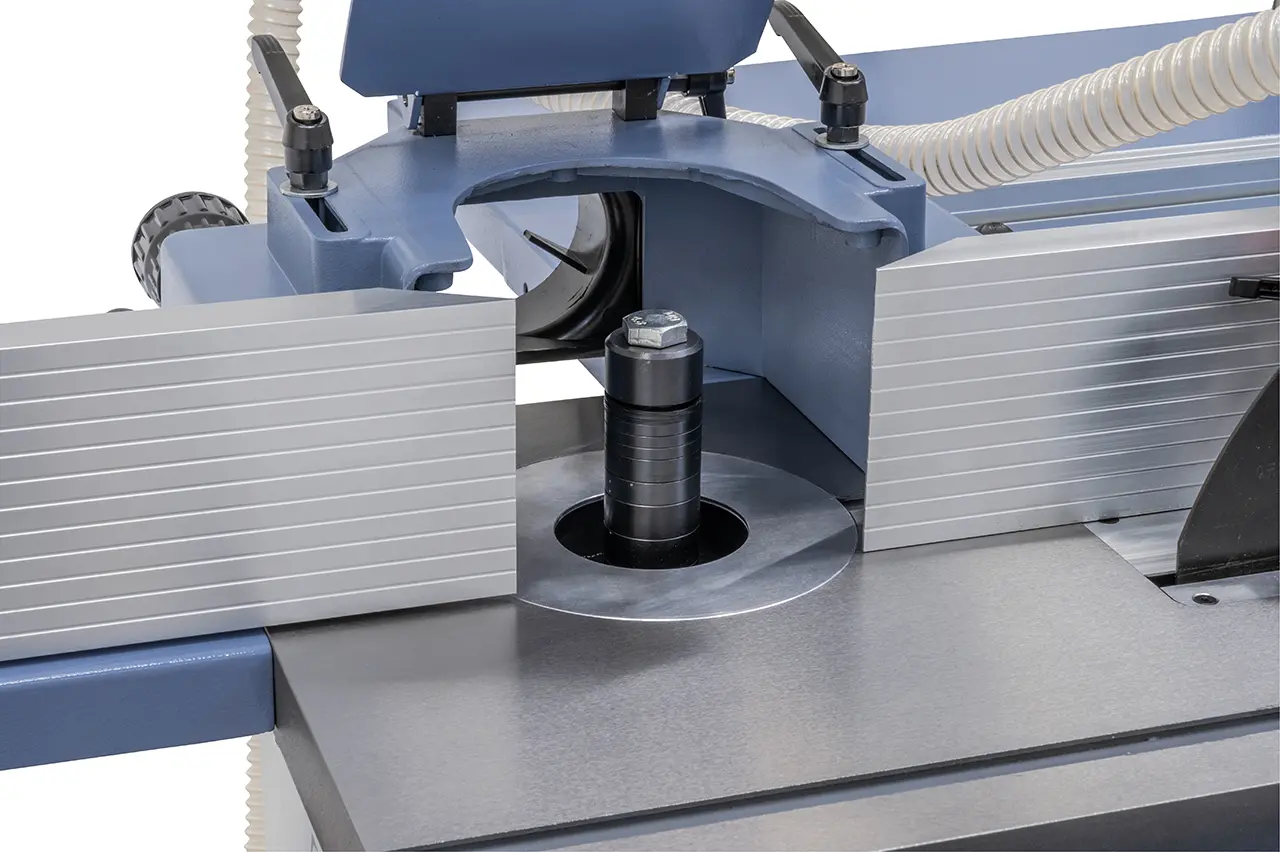 Nastavenie pílového agregátu sa vykonáva pomocou ergonomicky umiestnených ručných kolies