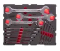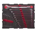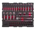 Součástí sady jsou ráčny s jemným chodem, které zajišťují přesné a plynulé utahování i v těsných prostorech. Nástavce a bity jsou vyrobeny z odolné oceli, která je navržena pro dlouhodobé používání a zvládne i vyšší zatížení.