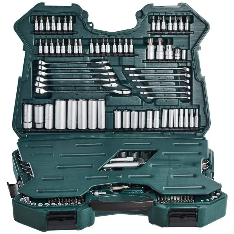 Sada obsahuje široký výběr hlavic, bitů a klíčů, které pokrývají běžné i méně obvyklé rozměry. To umožňuje použití při opravách automobilů, domácích spotřebičů, montáži nábytku nebo údržbě strojů. Všechny díly jsou navrženy tak, aby zvládly i časté používání.