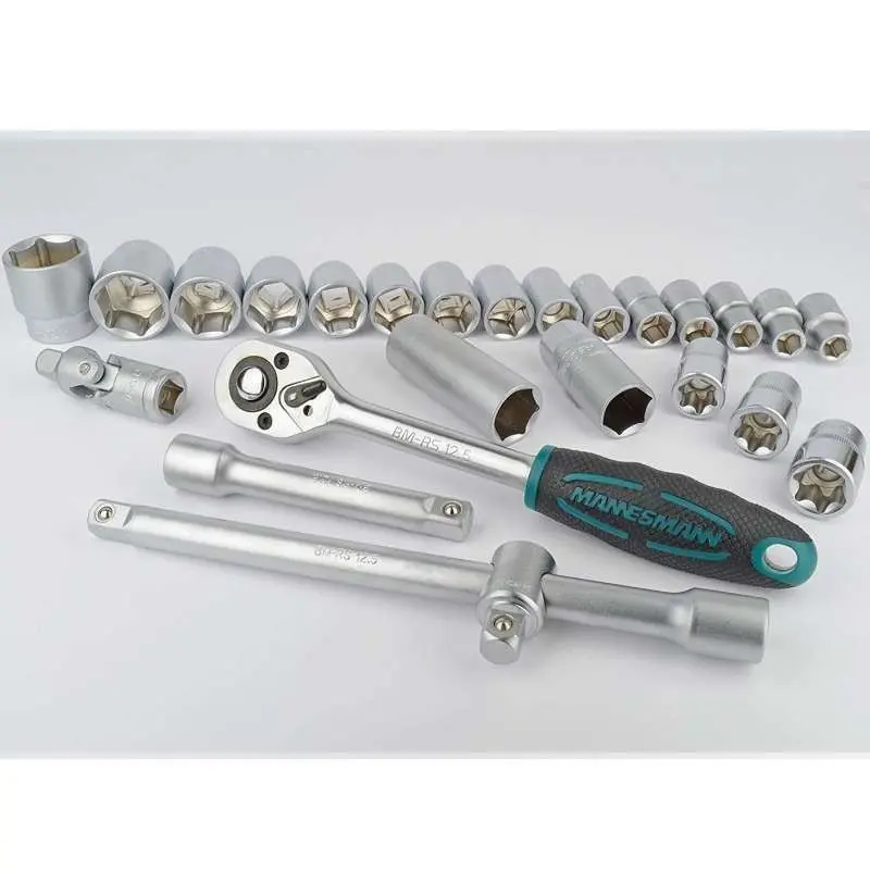 Součástí sady jsou ráčny s ergonomickou rukojetí, které umožňují pohodlné a efektivní utahování i povolování šroubů. Díky přehlednému uspořádání v pevném plastovém kufru je každý díl snadno dostupný a vždy na svém místě, což šetří čas při hledání správného nástroje.