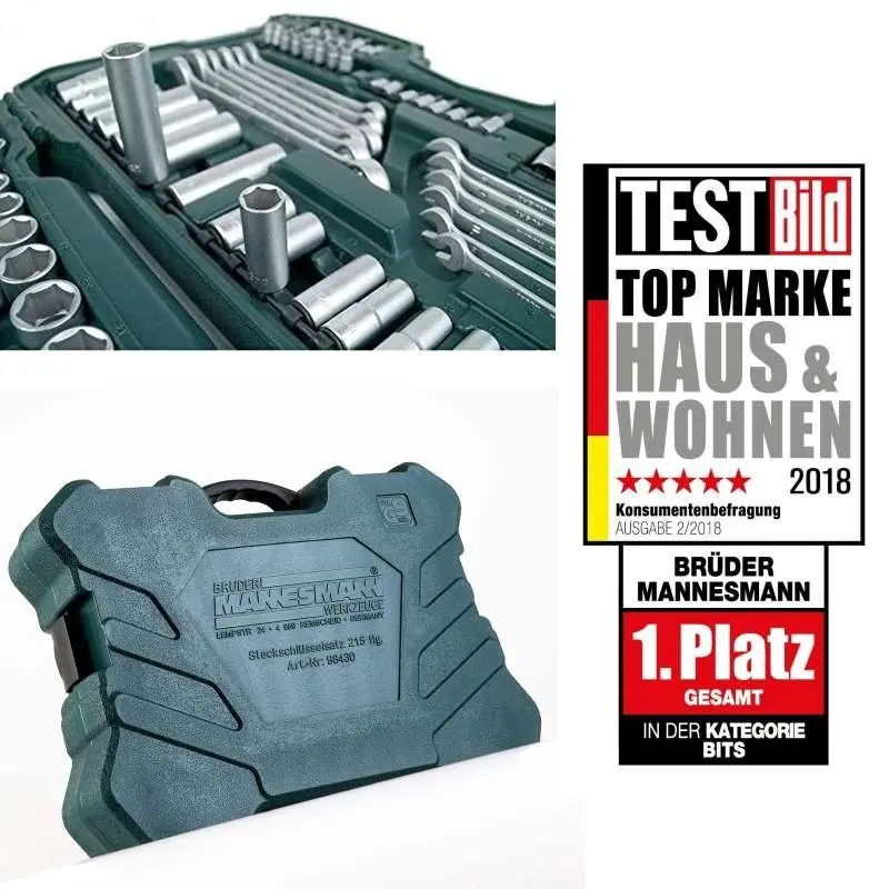 BRUDER MANNESMANN gola sada 1/4"+3/8"+1/2", 215 ks – všestranný pomocník pro dílnu i garáž