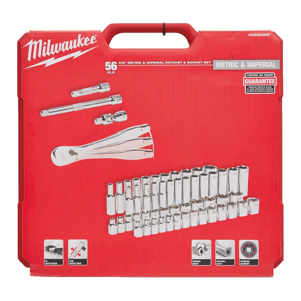Milwaukee 3/8" 6 ÷ 19 mm a 1/4 ÷ 5/16" Milwaukee 4932464946 metrické a palcové (56 dielov) (MI4932464946)