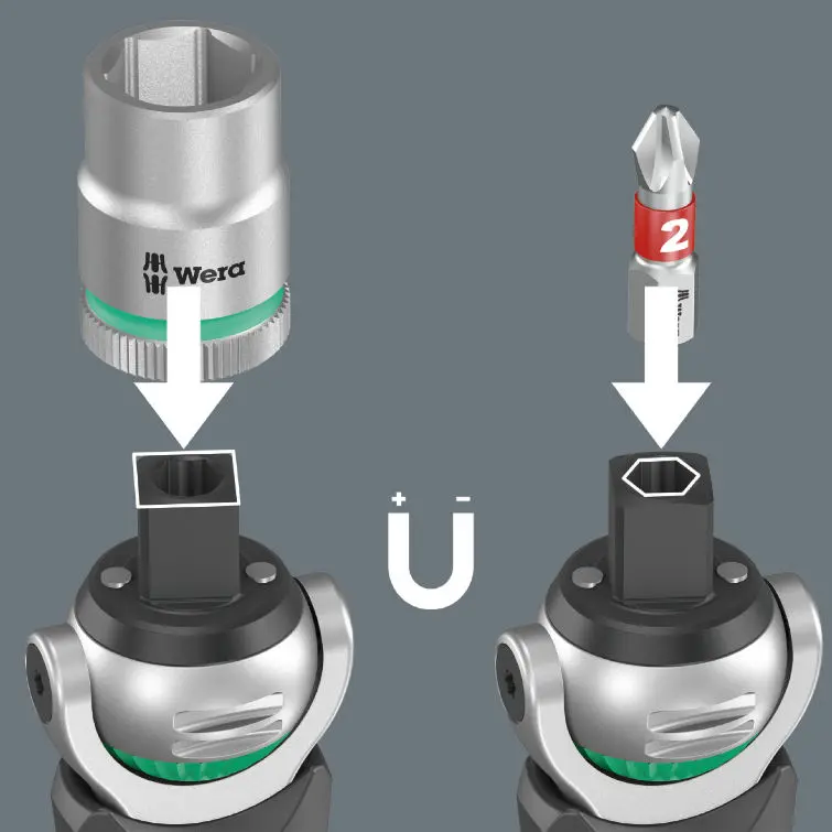 • Magnetické priame uchytenie pre bity 1/4" a hlavice 3/8"