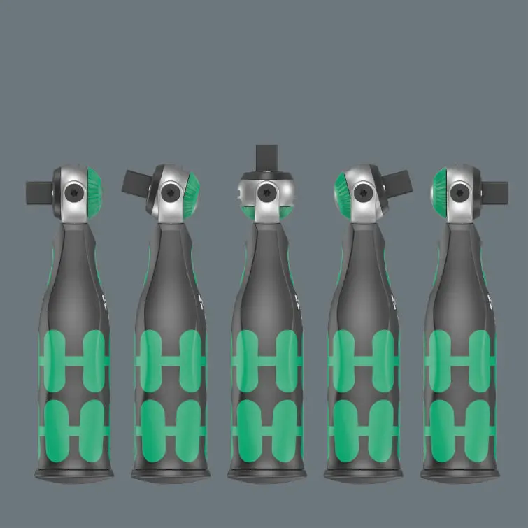 • Hlava s aretáciou v uhloch 0°, 15° a 90° umožňuje použitie nástroja ako račne a račňového skrutkovača