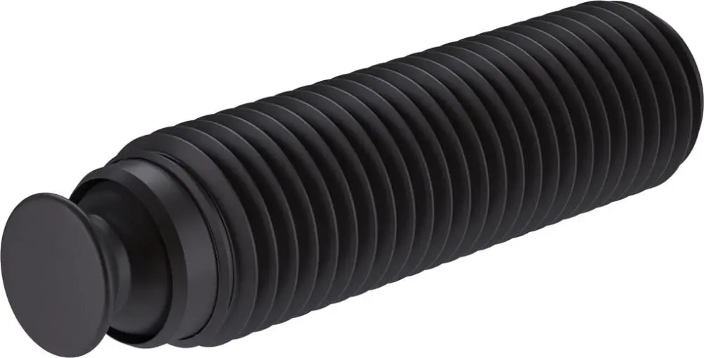 Hlavnú časť skrutky tvorí guľôčka z kalenej ocele, ktorá je pevne uložená v tele skrutky. Táto konštrukcia zabezpečuje rovnomerné rozloženie tlaku a minimalizuje riziko rozdrvenia alebo deformácie upínaného dielu. Skrutka má závit, ktorý umožňuje jednoduchú inštaláciu do prípravkov alebo strojov.