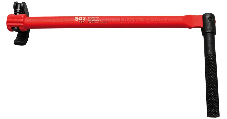 Hákový klíč BGS108330 s kloubovou T-rukojetí je určen pro matice do 40 mm, umožňuje snadný přístup i v hůře dostupných místech. Robustní konstrukce zajišťuje dlouhou životnost při častém používání.