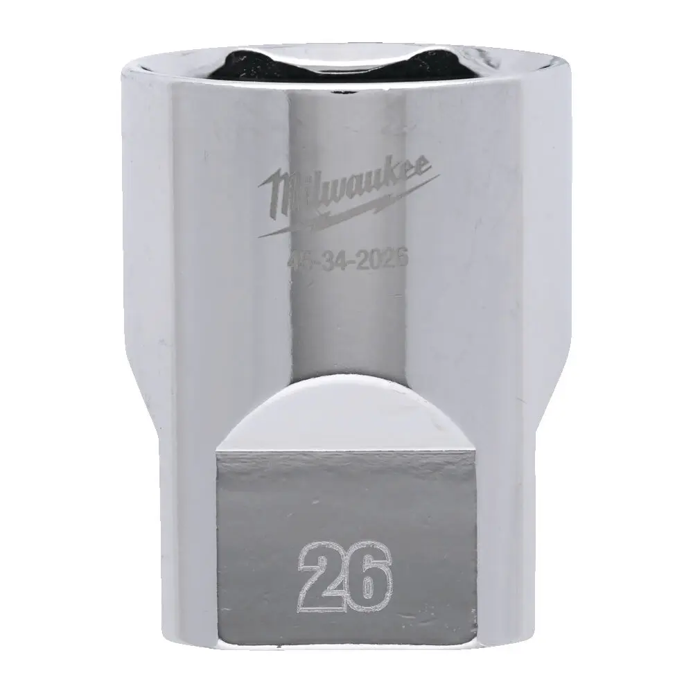 1/2˝ nástrčný klíč s rozměrem 26 mm je určený pro práci s maticemi a šrouby, které vyžadují přesné a pevné uchopení. Díky standardizovanému rozměru 1/2 palce je kompatibilní s běžnými ráčnami a prodlužovacími nástavci, což zajišťuje široké možnosti využití v dílně i na stavbě.