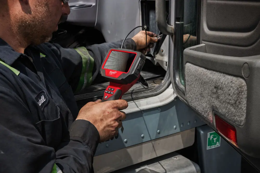 Přední a boční kamera zaručuje identifikaci jemných prasklin a dalších problémů na motoru a jiných částech vozidla
