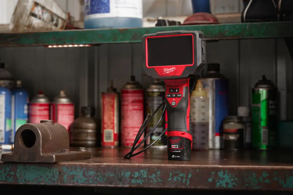 Inspekční kamera Milwaukee M12 ATB-0C nabízí flexibilní husí krk, 4,3" displej a LED osvětlení pro snadné prohlížení těžko přístupných míst bez nutnosti baterie v balení.