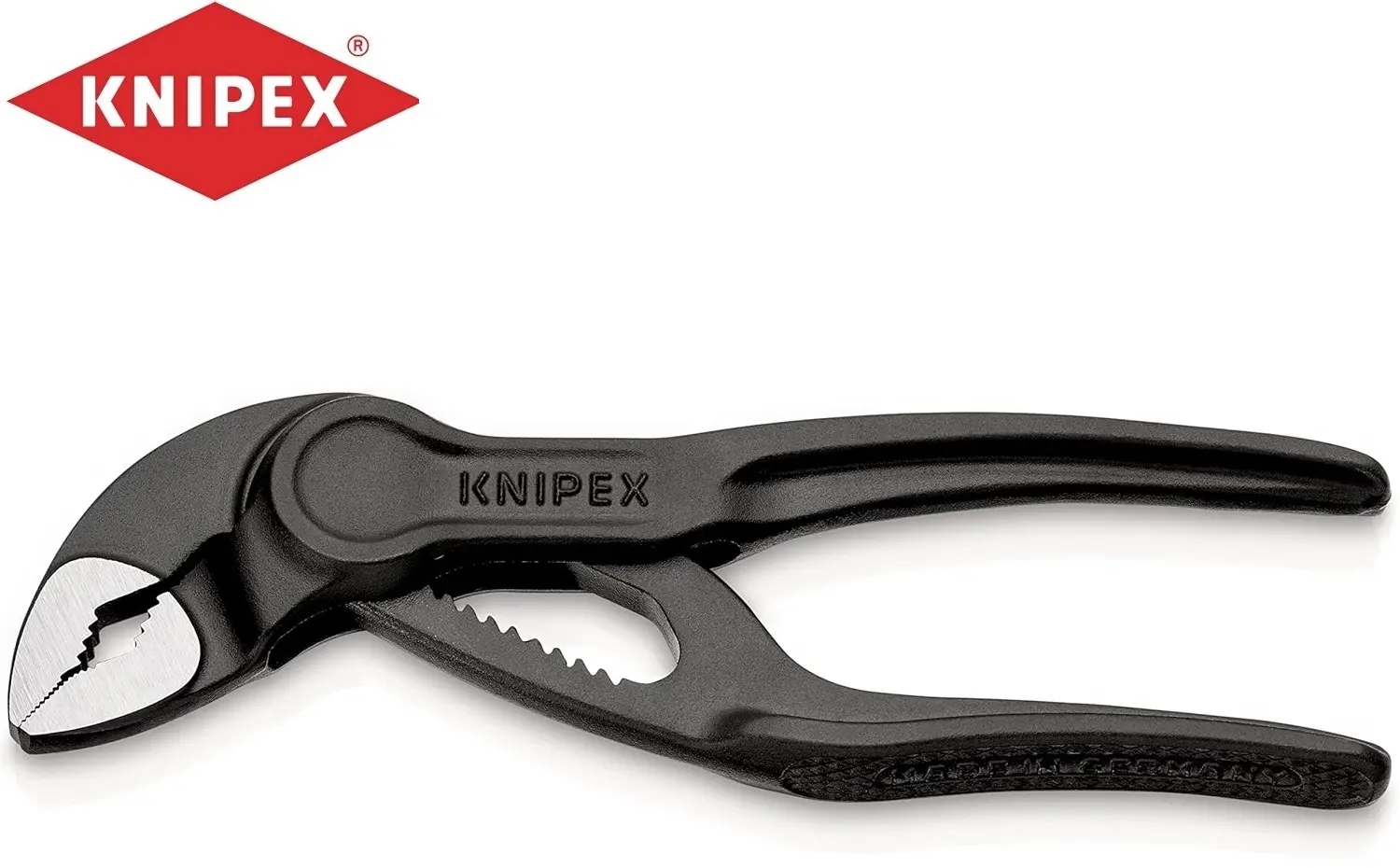 Instalatérské SIKO kleště série Cobra® XS. Mimořádně kompaktní konstrukce, šedé atramentované se štíhlou hlavou a rukojetí s protiskluzem, originál v miniatuře. Optimální řešení pro práci ve stísněných prostorech. Šrouby a matice tak jemně utáhnete i