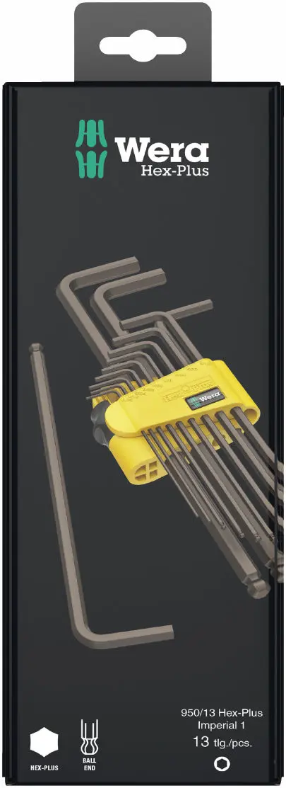 Sada kvalitných uhlových kľúčov Wera na palcovej skrutke so šesťhrannou guľatou hlavou na dlhom ramene