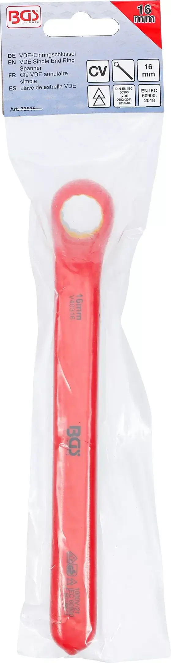 Jednostranný očkový kľúč 16 mm BGS 72016 VDE, hlboko vyhnutý (BGS1072016)