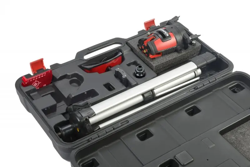 KAPRO PROLASER ALL-LINES je laserový nivelačný prístroj určený na presné vyznačovanie horizontálnych a vertikálnych čiar v interiéri aj exteriéri. Súčasťou balenia je statív, ktorý umožňuje jednoduché nastavenie výšky a stabilné umiestnenie prístroja počas práce. Prístroj je vhodný pre stavbárov, remeselníkov a domácich majstrov, ktorí potrebujú rýchlo a presne vyznačiť rovinu alebo pravý uhol.