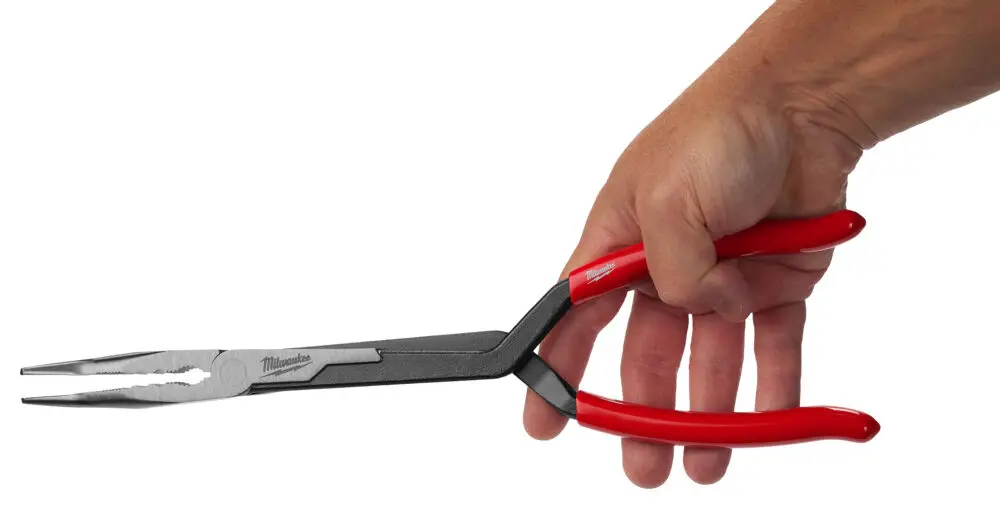 Dlouhé kleště Milwaukee Long Reach s vyhnutím 45° umožňují snadný přístup do hůře dostupných míst a přesné uchopení drobných předmětů. Ergonomická rukojeť zvyšuje komfort při práci.