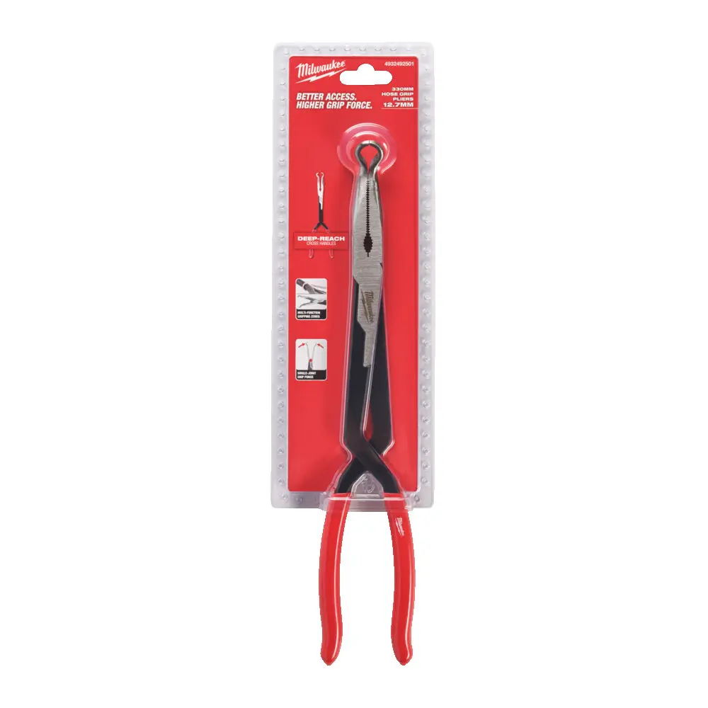 Kleště na hadice Milwaukee 4932492500 umožňují snadné uchopení a manipulaci s hadicemi o průměru 8 mm díky přesnému tvarování čelistí. Ergonomická rukojeť zajišťuje pohodlné držení při práci v úzkých prostorech.