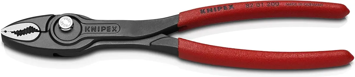 Kliešte TwinGrip 200 mm Knipex 82 01 200 umožňujú pevné uchopenie vďaka špeciálnej čeľusti a päťstupňovému nastaveniu rozovretia pre prácu v rôznych situáciách. Ergonomicky tvarované rukoväte zaisťujú pohodlné držanie pri dlhšom používaní.