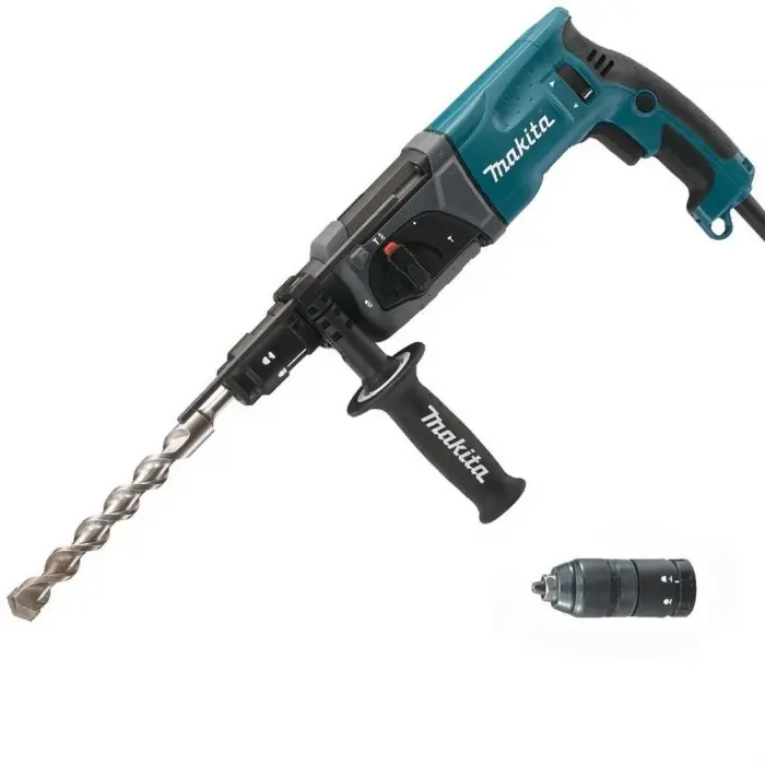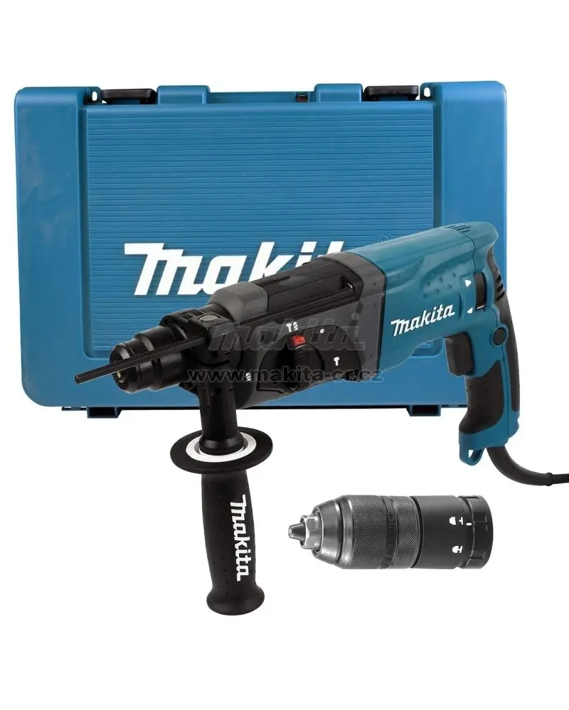 Příklepové vrtací kladivo Makita HR2470T nabízí příkon 780 W, energii úderu 2,4 J a upínání SDS-Plus pro efektivní vrtání i sekání. S hmotností 3 kg a 1100 otáčkami za minutu zvládne širokou škálu stavebních úkolů.