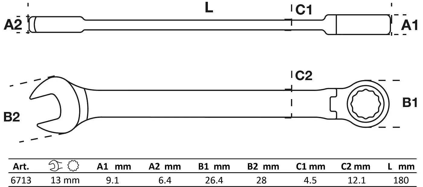 Kombinovaný kľúč 13 mm s račňou BGS106713, kĺbový (BGS106713)