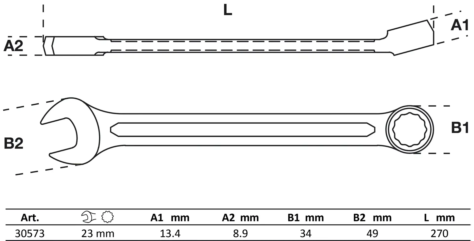 Kombinovaný kľúč 23 mm BGS1030573, DIN 3113, matný chróm (BGS1030573)