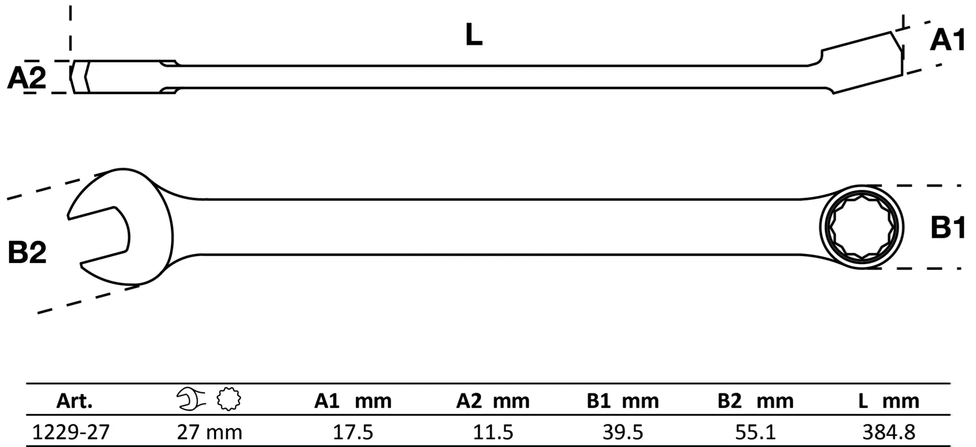 Kombinovaný kľúč 27 mm BGS101229-27, extra dlhý, leštený (BGS101229-27)