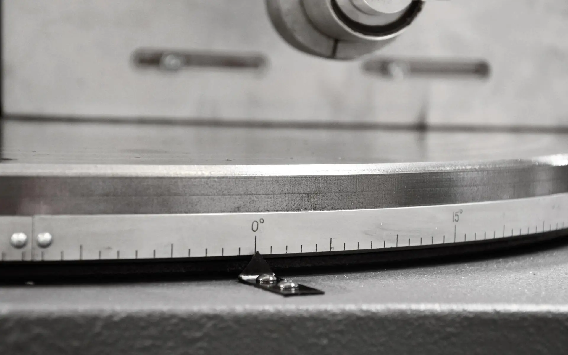 Prehľadná a dobre čitateľná uhlová stupnica je umiestnená na prednej strane stola