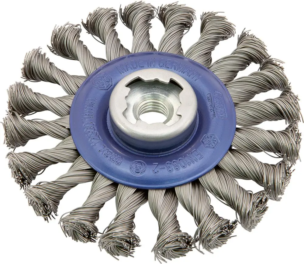 Provedení: Agresivní provedení s copánkovým drátem. Pro extrémní použití, s vysokými obvodovými rychlostmi. I pro ruční stroje použitelný. Kombinovaný úchyt X-LOCK a závitový úchyt M14.
