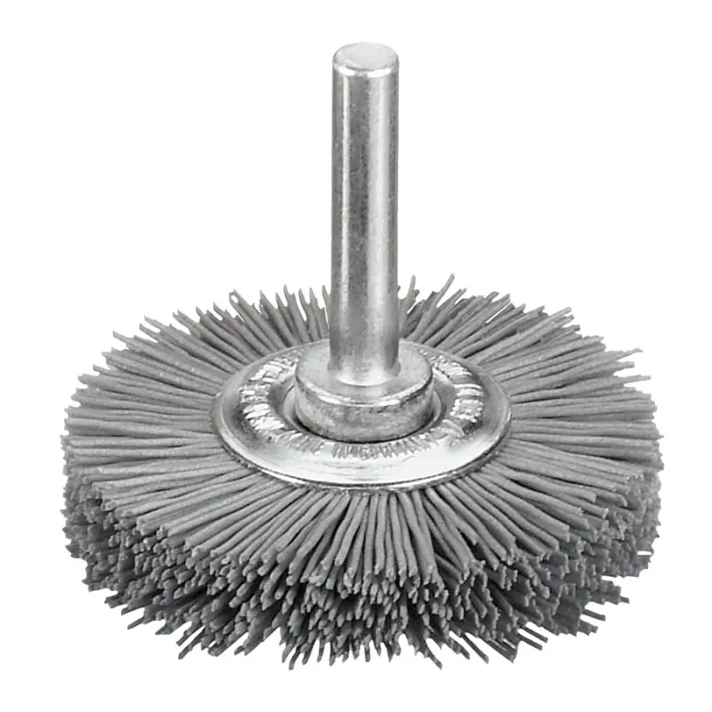 Wheel Brush S6 70x12mm Silicon Carbide G320 Crimped 0.6mm. Abrasívne kotúčové kefy (karbid kremíka a keramické zrno) sa používajú na odihlovanie nerezu a hliníka, na všeobecné čistenie, uhladzovanie, čistenie zvarov, odstraňovanie korózie a náterov.