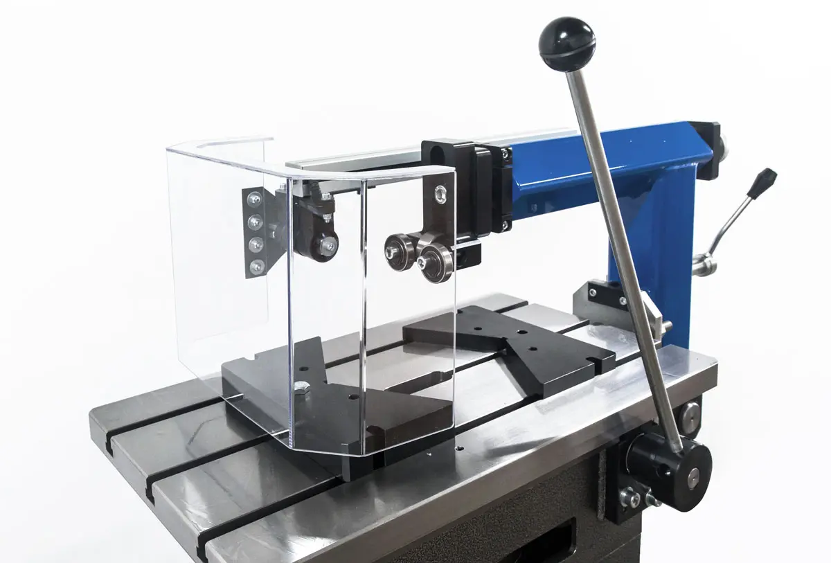 Hlavnou funkciou krytu je chrániť obsluhu pred kontaktom s rotujúcimi časťami a znížiť riziko poranenia. Priehľadná časť krytu umožňuje sledovať proces rezania bez jeho odstránenia, čo zvyšuje kontrolu nad pracovným procesom.