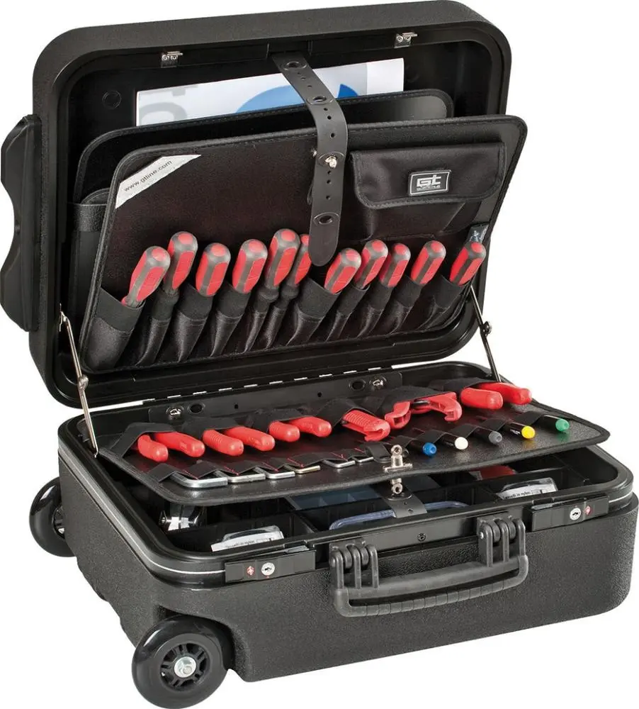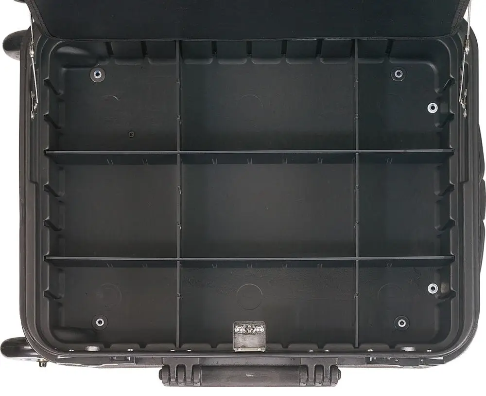Robustný materiál zabezpečuje ochranu uloženého vybavenia pred mechanickým poškodením a prachom. Kufrík je vybavený pevnými uzávermi, ktoré zabraňujú náhodnému otvoreniu počas prepravy. Vďaka ergonomickej rukoväti je manipulácia s kufrom pohodlná aj pri plnom zaťažení.