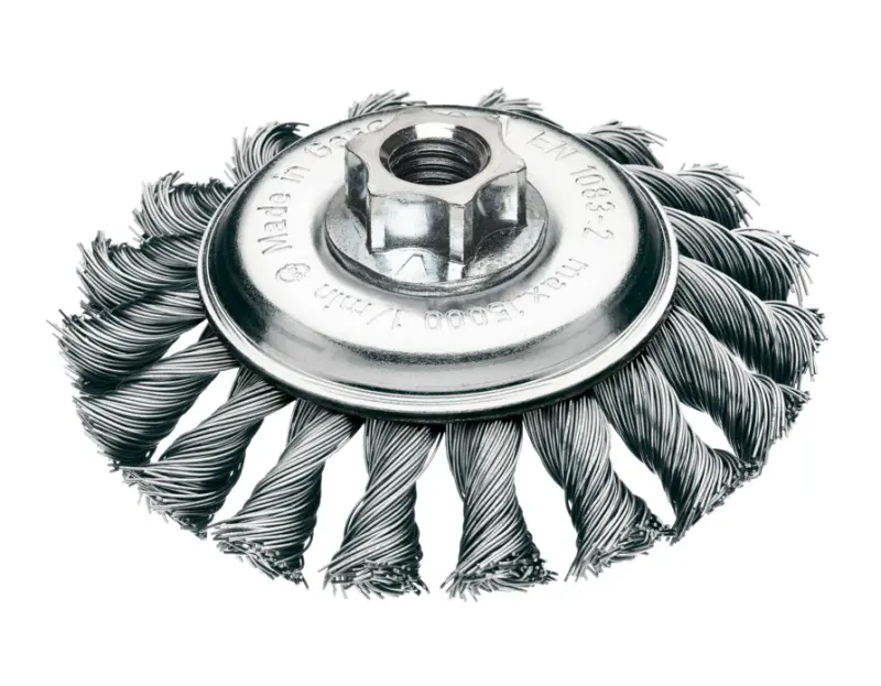 Vhodné pre uhlové brúsky 115 mm a 125 mm. Kužeľové kefy so splietaným drôtom sa používajú na opracovanie ťažko dostupných miest, na spracovanie zvarov a na odstraňovanie okují, hrdze, náterov a trosky.