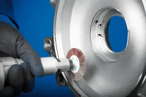 U lamelových brúsnych kotúčov s fixačným uchytením sú lamely z poťahovaného brúsivá usporiadané radiálne okolo osi nástroja vo vejárovej štruktúre