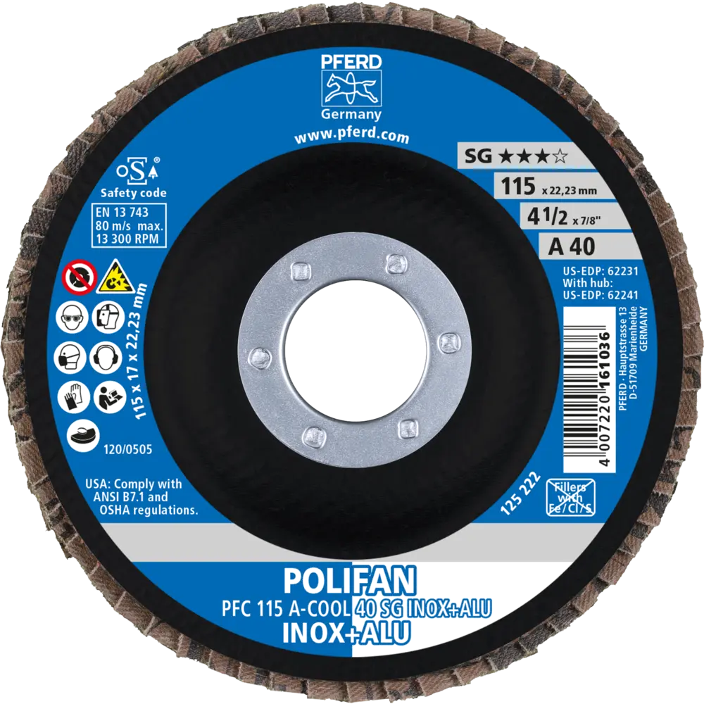 Lamelový brúsny kotúč Pferd PFC 115 A-COOL 40 SG INOX + ALU - nerez a hliník (PF4007220232880)