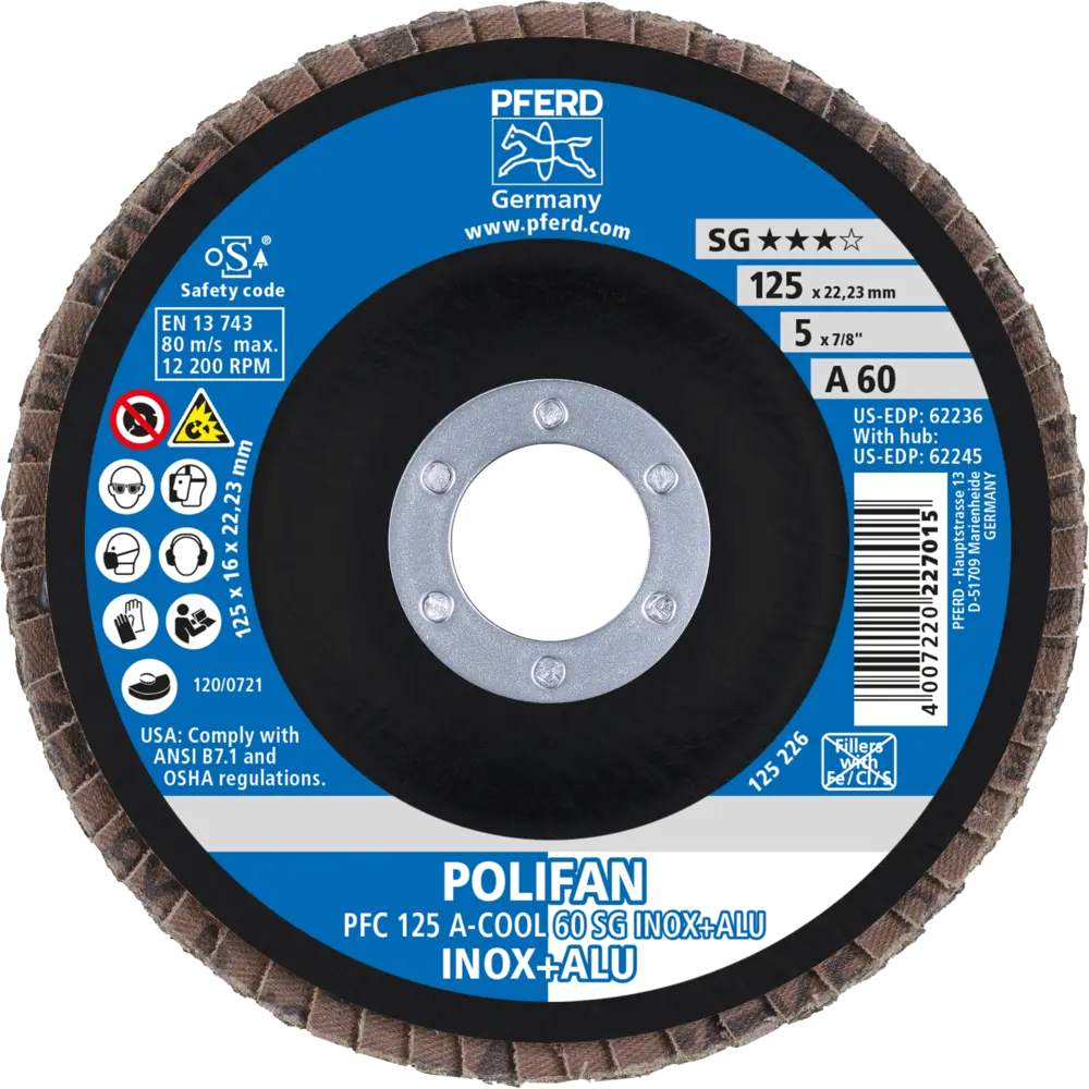 Lamelový brúsny kotúč Pferd PFC 125 A-COOL 60 SG INOX + ALU - nerez a hliník (PF4007220232941)