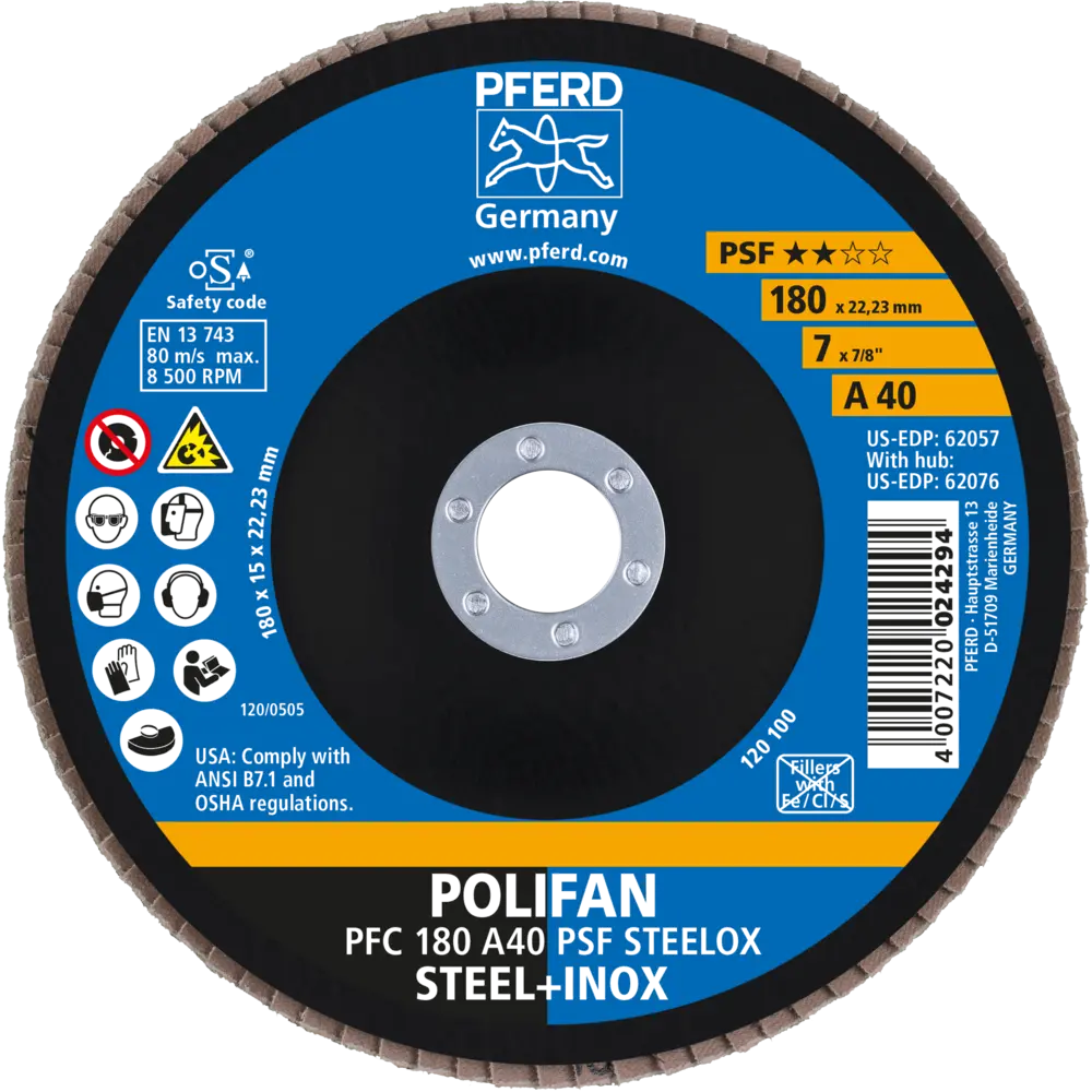 Lamelový brúsny kotúč Pferd PFC 180 A 40 PSF STEELOX - nerezová oceľ (PF4007220444689)